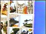 As the commercial ends, the left page of the comic in the screen above features scenes from the issue #7 (page three, panels A through D). Also, the right page in the screen capture contains shots from the comic book commercial (See Screen Captures section: third row, left and center images).