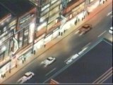 calls the police to report a riot but is interrupted as a large biker picks