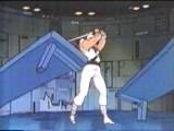 Shadow, but Cobra's ninja slices the table in half and leaps onto a platform