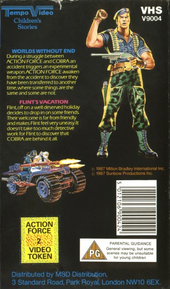 · The image of Flint, which originated from the toy package artwork and is located on the back cover, also appears on the following videos: St. Michael - 2587/5822, Tempo - V9004 and Video One; the artwork was recreated for Tempo - 92512